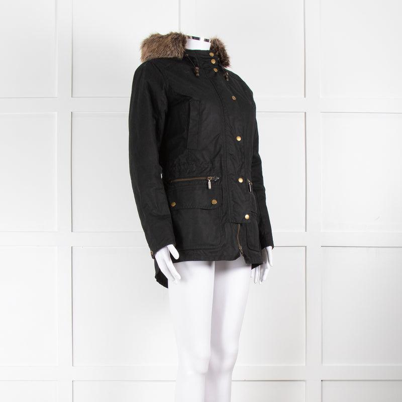 Barbour Black With Faux Fur Hood Trim Jacket