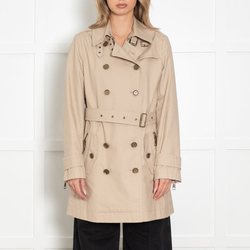 Burberry Beige Short Double Breasted Trench Coat