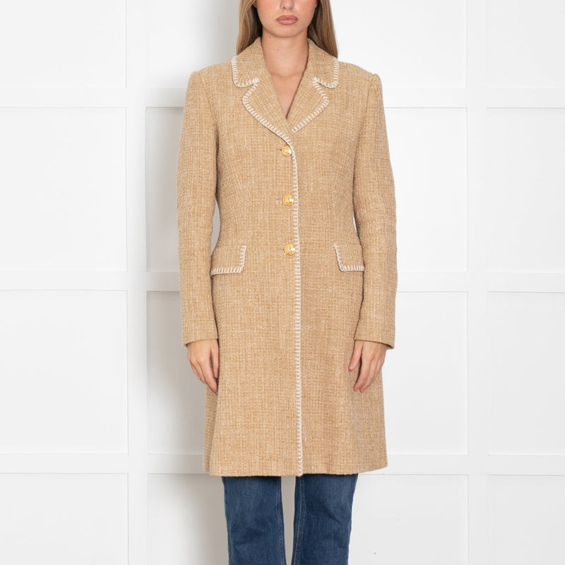 Boutique Moschino Beige Boucle Coat with Stitch Edge Detail