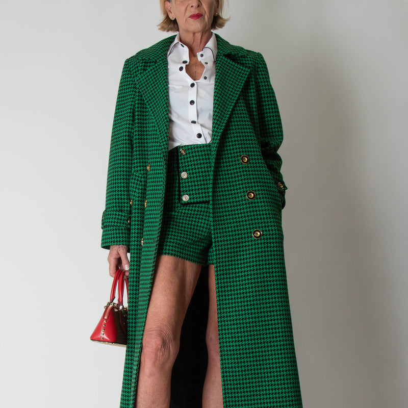 Glamoda Style X Sophie Hermann Green & Black Check Pied De Poule Shorts