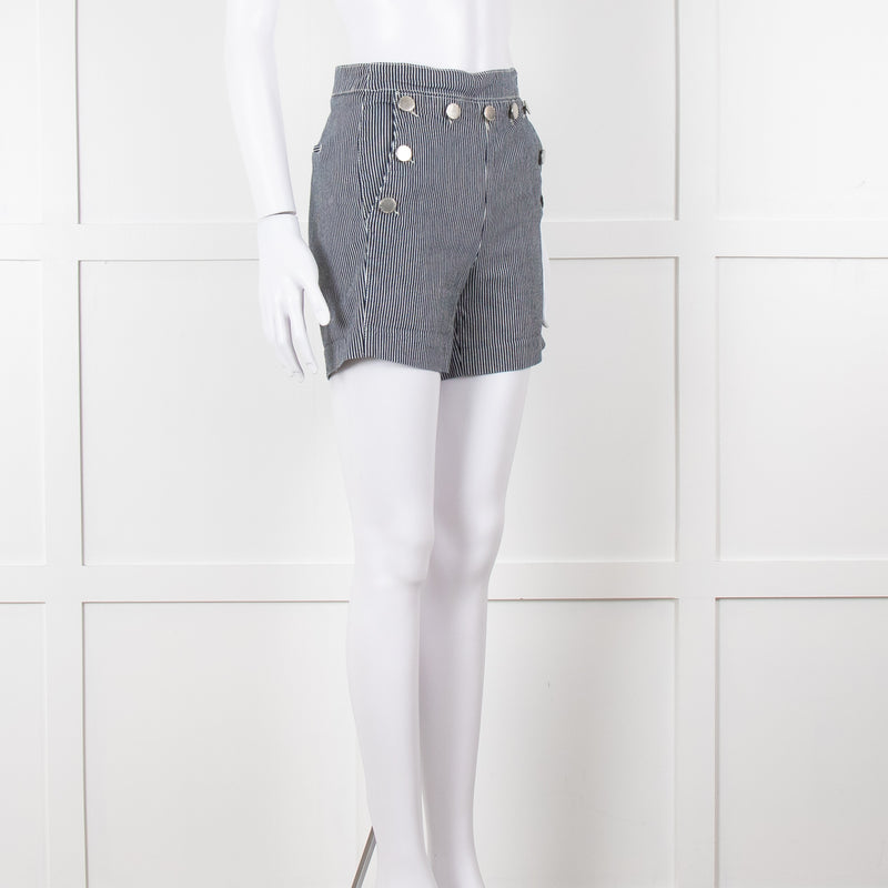Maje Blue White Pin Stripes Silver Buttons Shorts