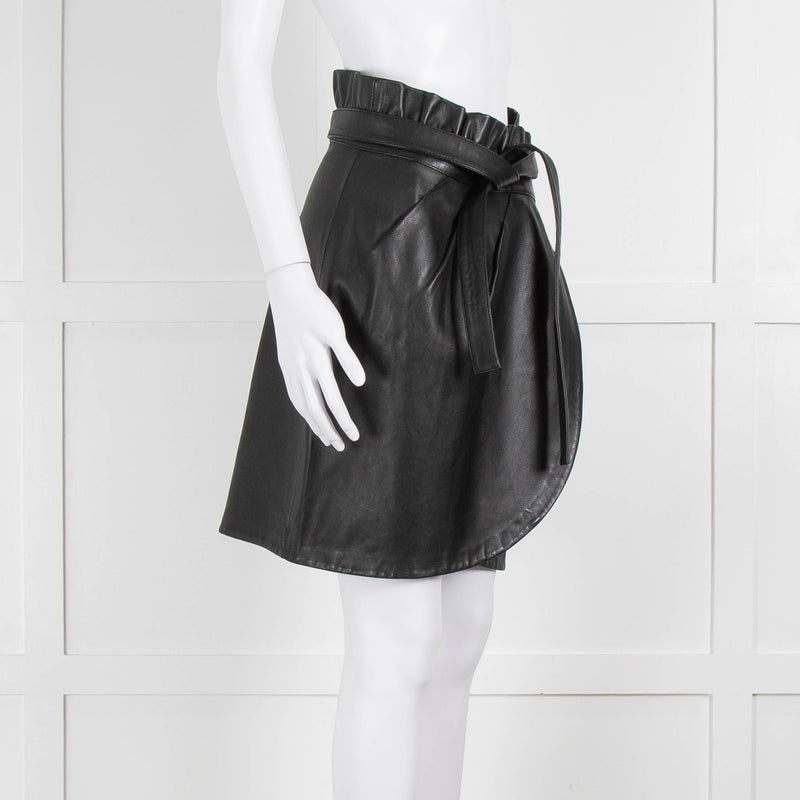 Ba&sh Black Leather High Waisted Wrap Skirt