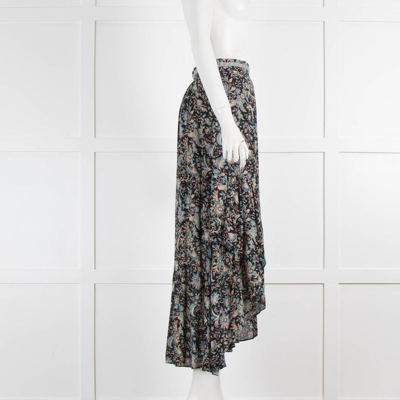 ba&sh Blue Floral Dipped Back Hem Skirt
