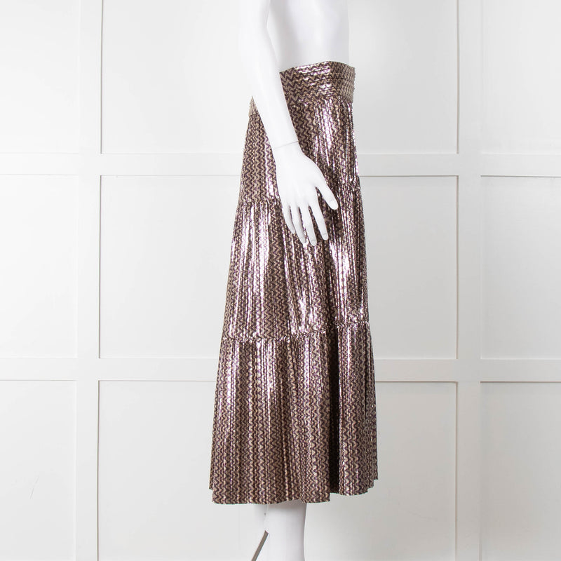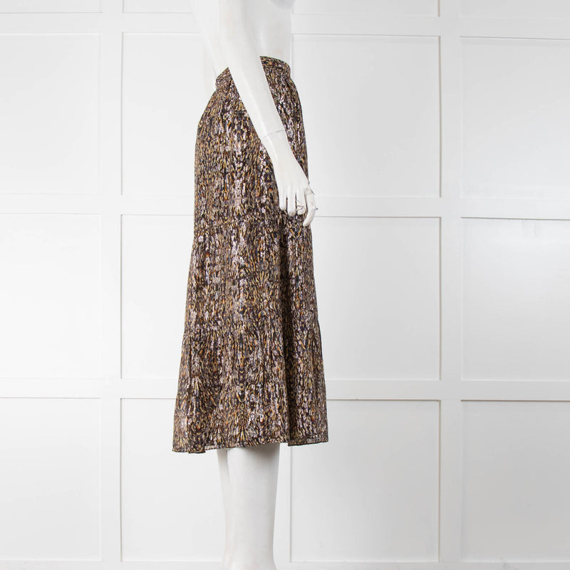 Ba&sh Metallic Gold and Purple Tiered Midi Skirt