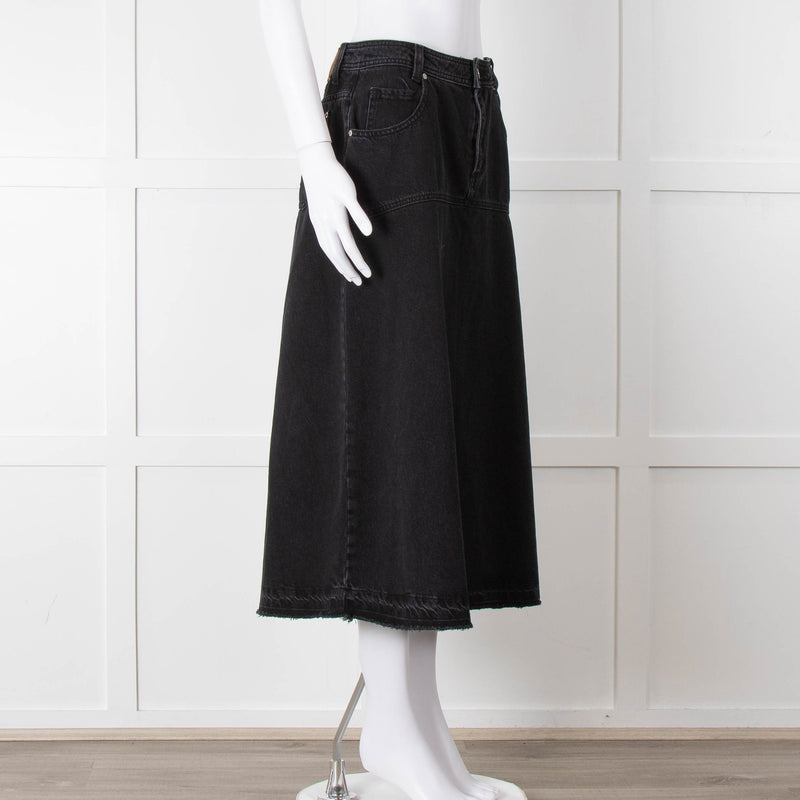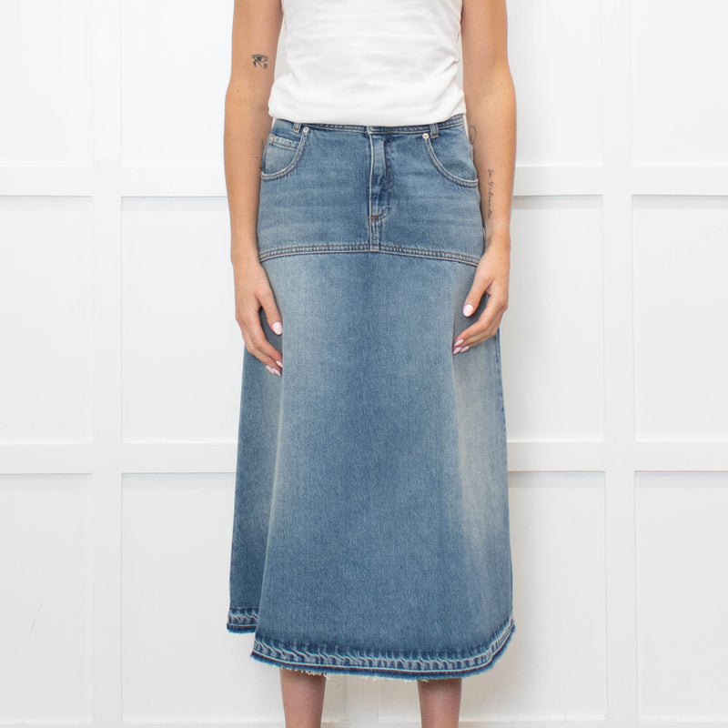 B Sides Dark Denim Midi Skirt with Red Stitching