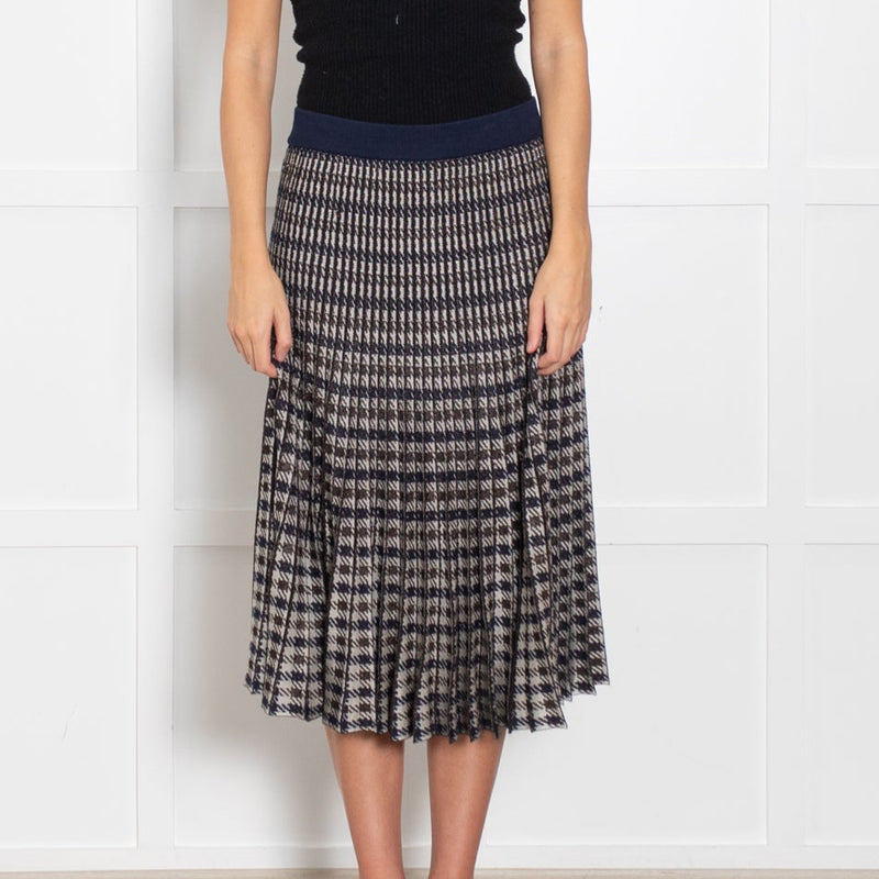 Baum Und Pferdgarten Navy Cream Houndstooth Pleated Skirt