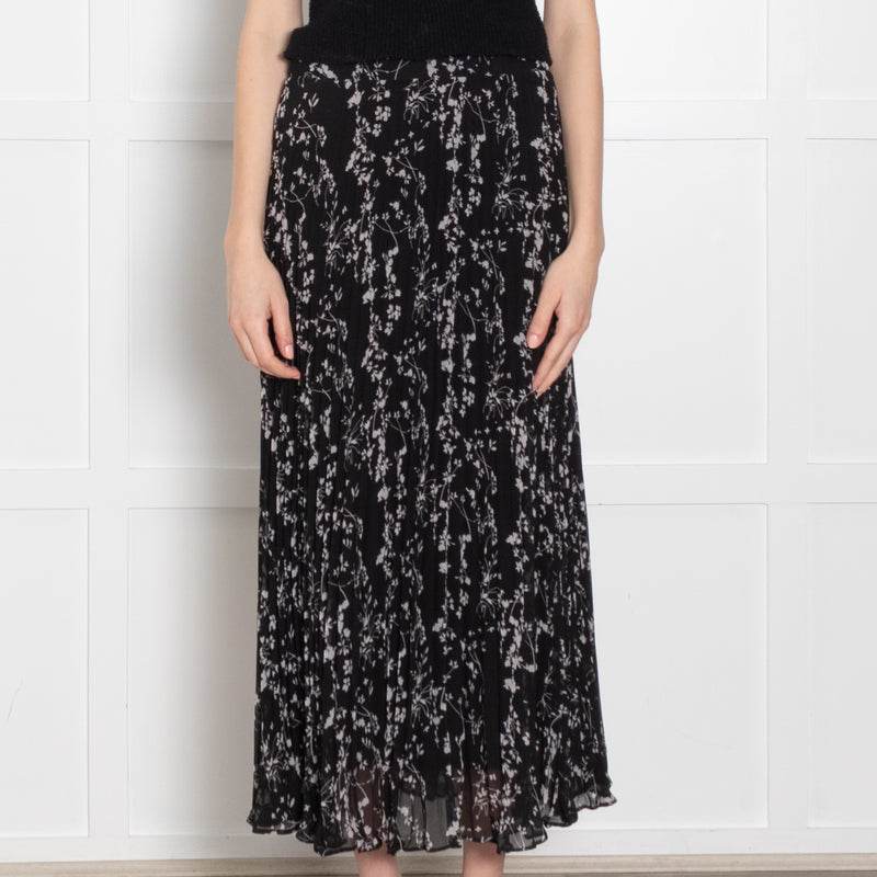 Ba & Sh Black White Floral Pleated Midi Skirt