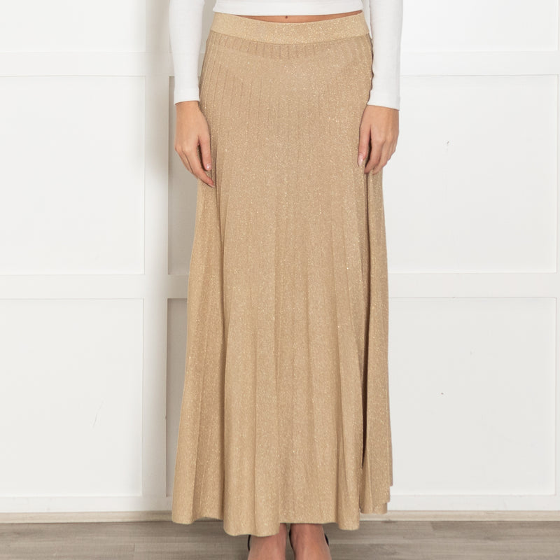 Baum und Pferdgarten Cream Brown Lurex Pleated Knitted Skirt