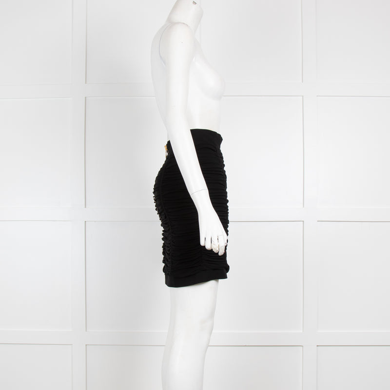 Balmain Black and Taupe Jacquard-knit Wool Blend Skirt With Back Zip