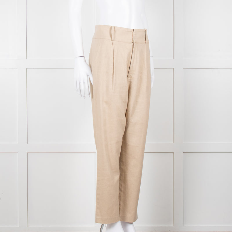 Anine Bing Beige Linen Trousers With Front Pleats