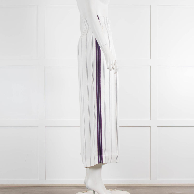 Amanda Wakeley White Pinstripe Trousers With Purple Side Stripe