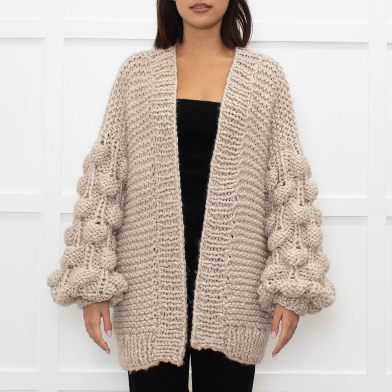 Panapufa Loose Knit Beige Fluffy Cardigan