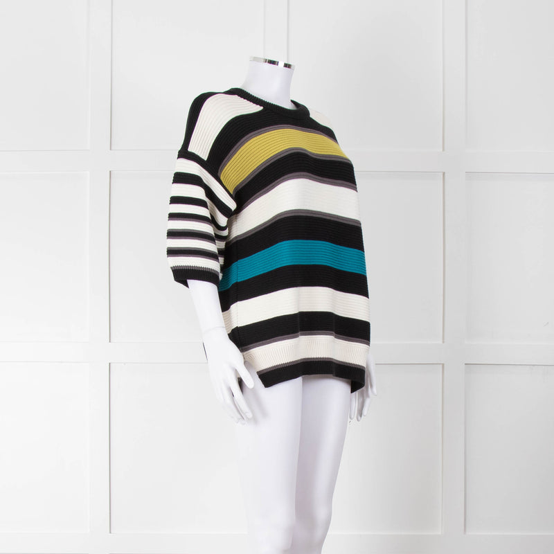 P.S Paul Smith Multi Coloured Rib Knit Striped Jumper with Short Sleeves