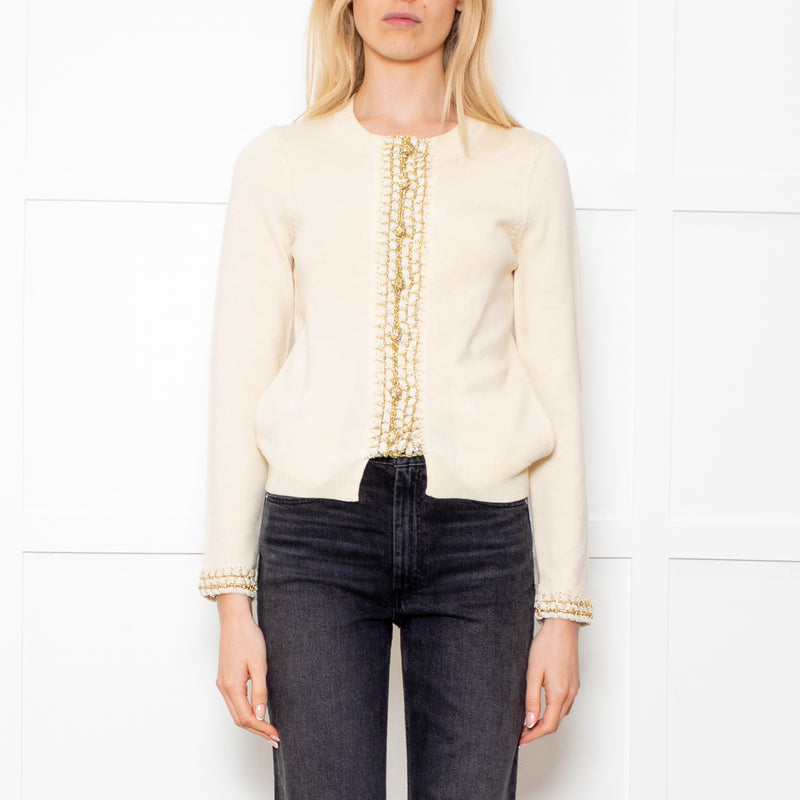 Opening Ceremony Cream Button Up Cardigan With Gold Brocade