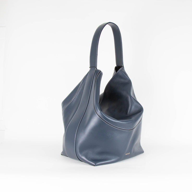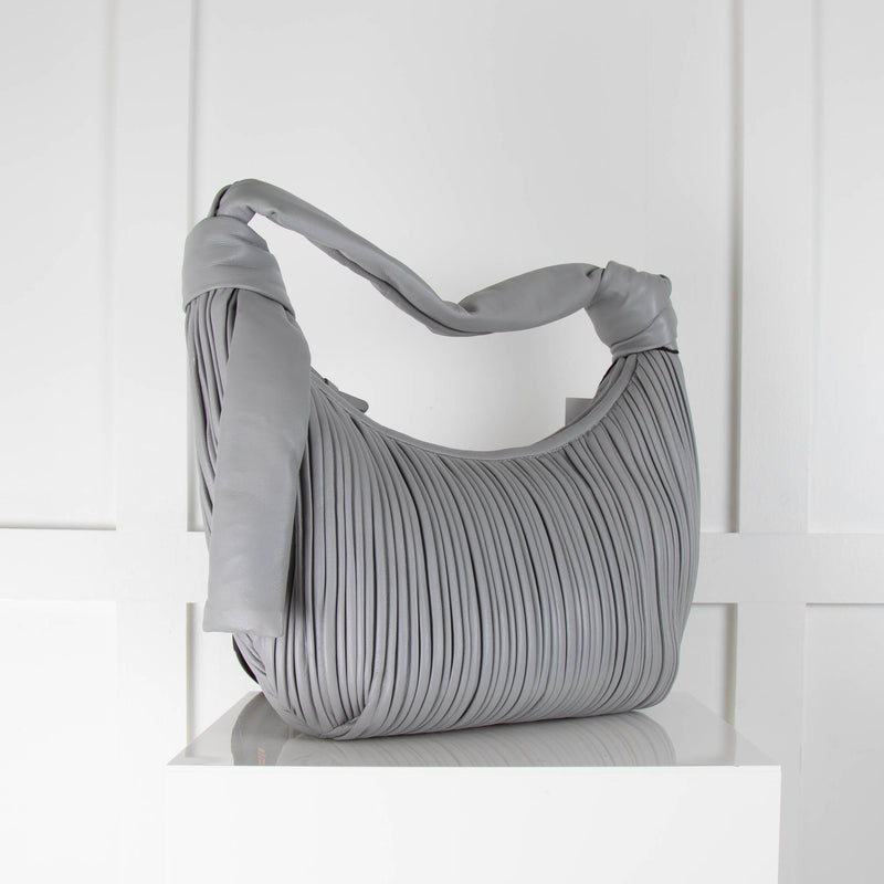 Neous Grey Neptune Knotted Pleated Leather Shoulder Bag