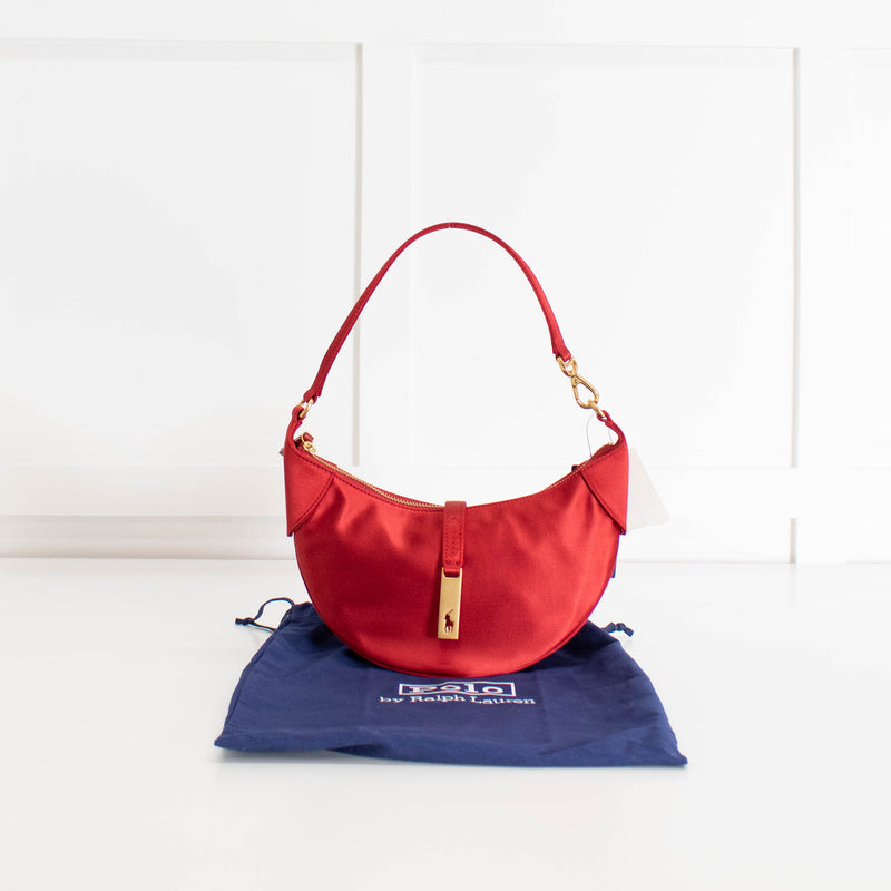 Polo Ralph Lauren Red Satin Gold Logo Shoulder Bag