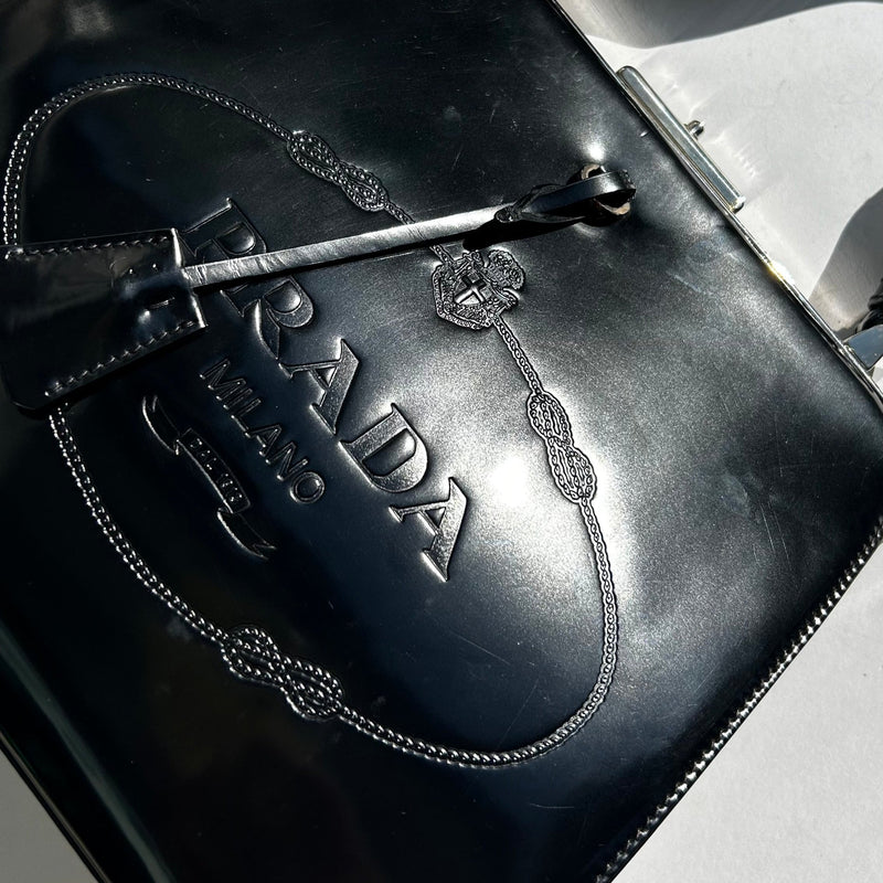 Prada Black Patent Spazzolato Box Frame Bag