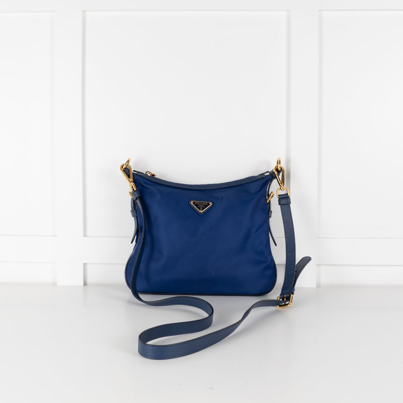 Prada Cobalt Blue Nylon Leather Trim Crossbody Bag
