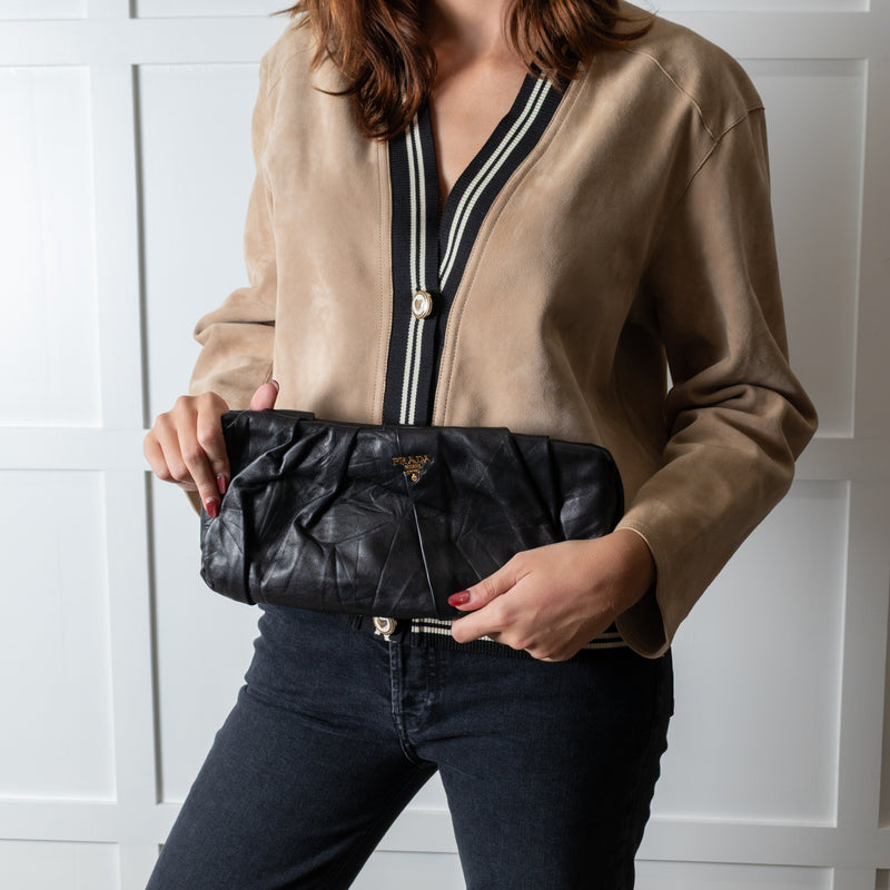 Prada Black Ruched Leather Clutch Bag