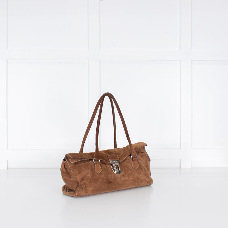 Prada Brown Camoscio Suede Shoulder Bag