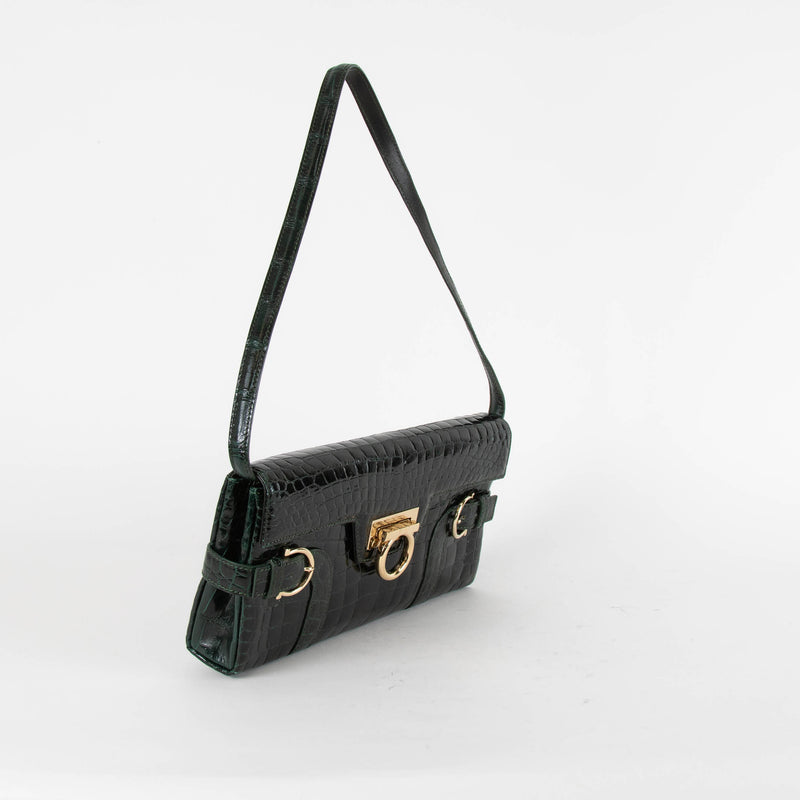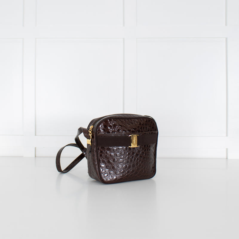 Salvatore Ferragamo Brown Croc Vintage Shoulder Bag