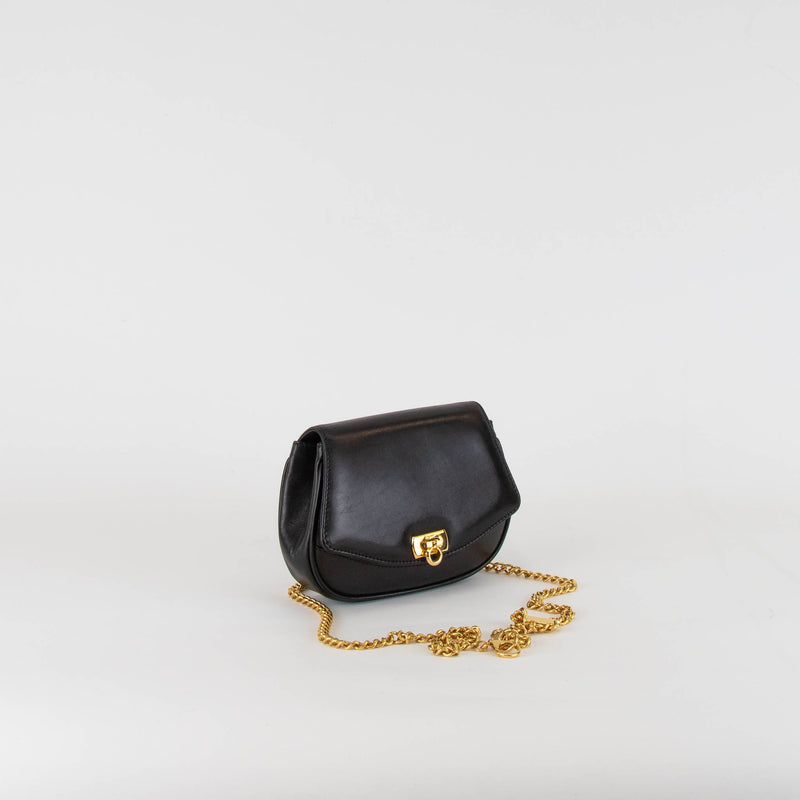 Salvatore Ferragamo Black Gold Chain Leather Belt Bag
