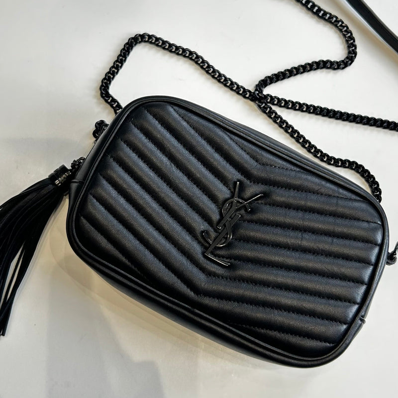 Saint Laurent Black Chevron Mini Lou Camera Bag
