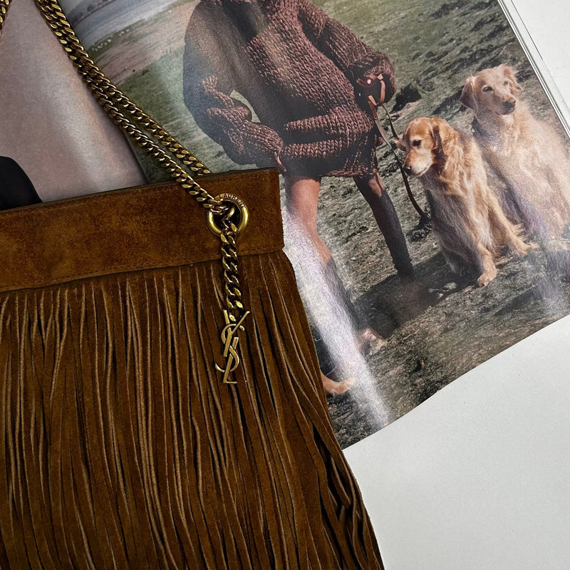 Saint Laurent The Grace Fringed Tan Bag Gold Chain