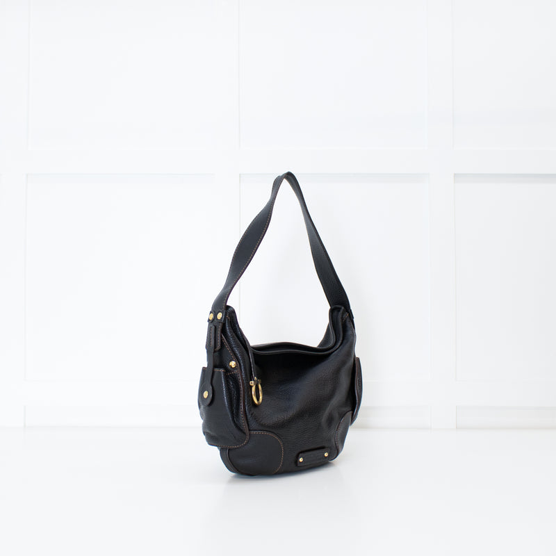 Salvatore Ferragamo Black Grainy Leather Hobo Shoulder Bag