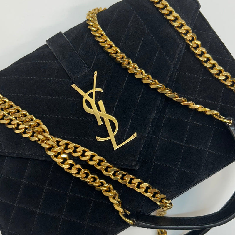 Saint Laurent Black Suede Quilted Envelope Crossbody
