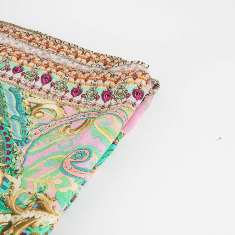 Camilla Pale Pink Green Print Diamante Square Silk Scarf