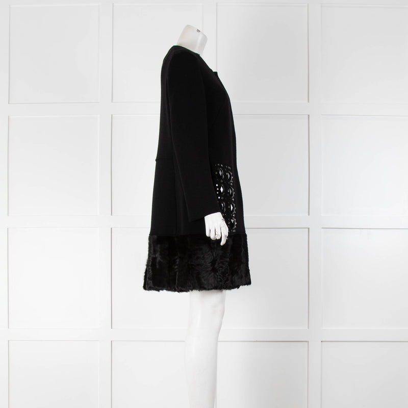 Charlott Black Knit Embellished Fur Trim Coat