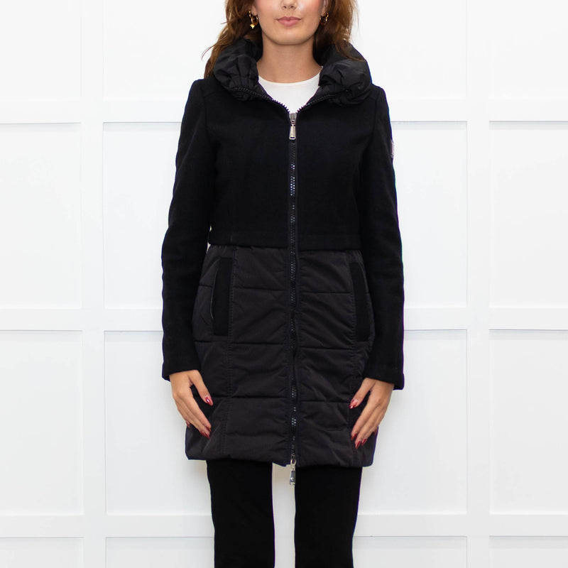 Caractere Black Wool Mix - Puffa KneelengthCoat With Hood