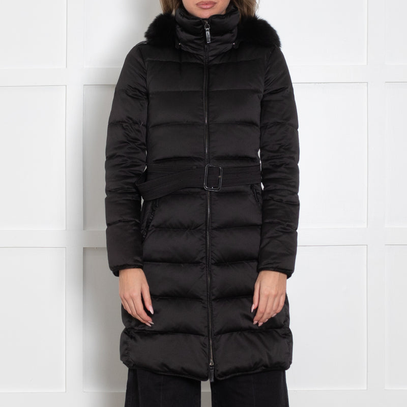 Burberry Prorsum Black Quilted Fur Hood Belted Coat
