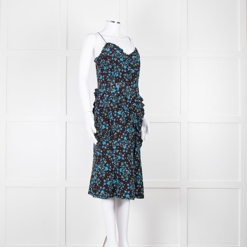Altuzarra Black Blue Floral Frill Detail Sleeveless Dress