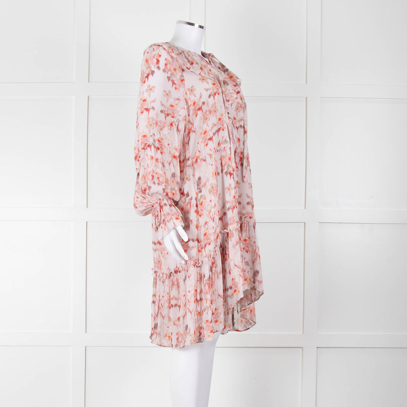 All Saints Dusty Pink Floral Frill trim Long Sleeve Dress