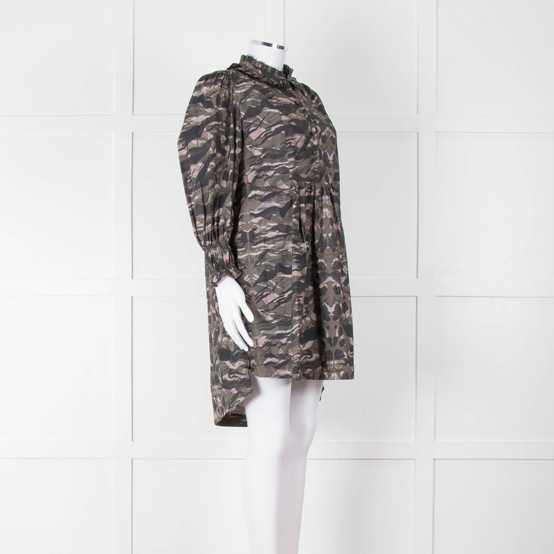 All Saints Green Khaki Puff Ruched Cuff Sleeved Mini Dress