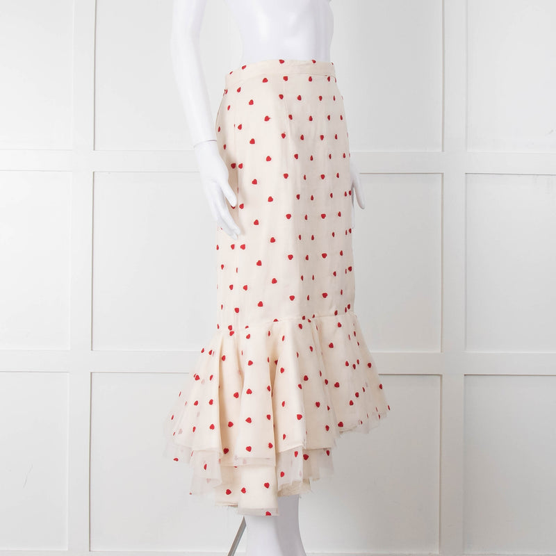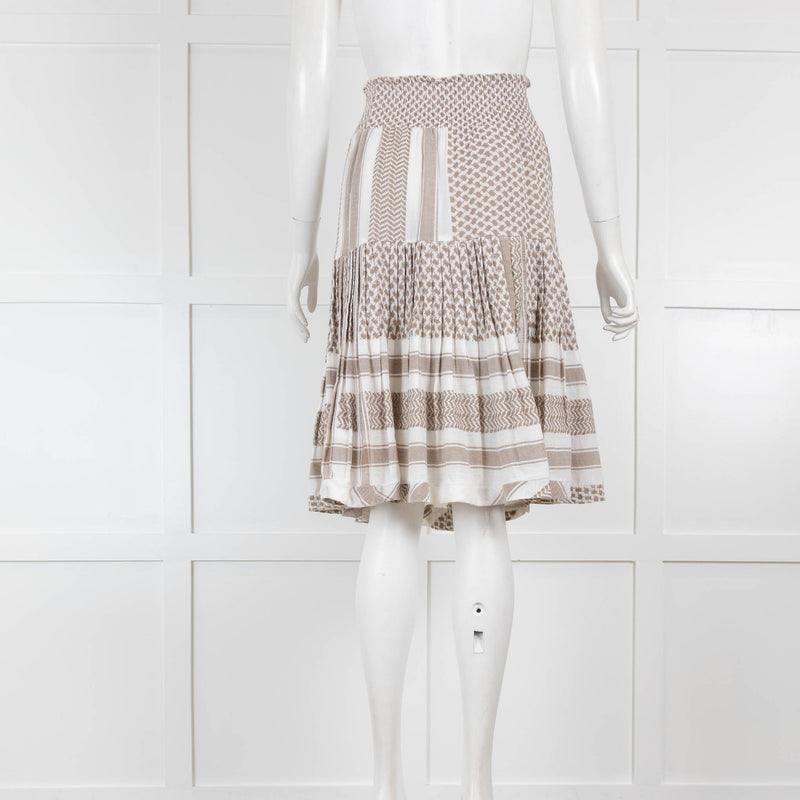 Cecilie Copenhagen White and Beige Patterned Midi Skirt