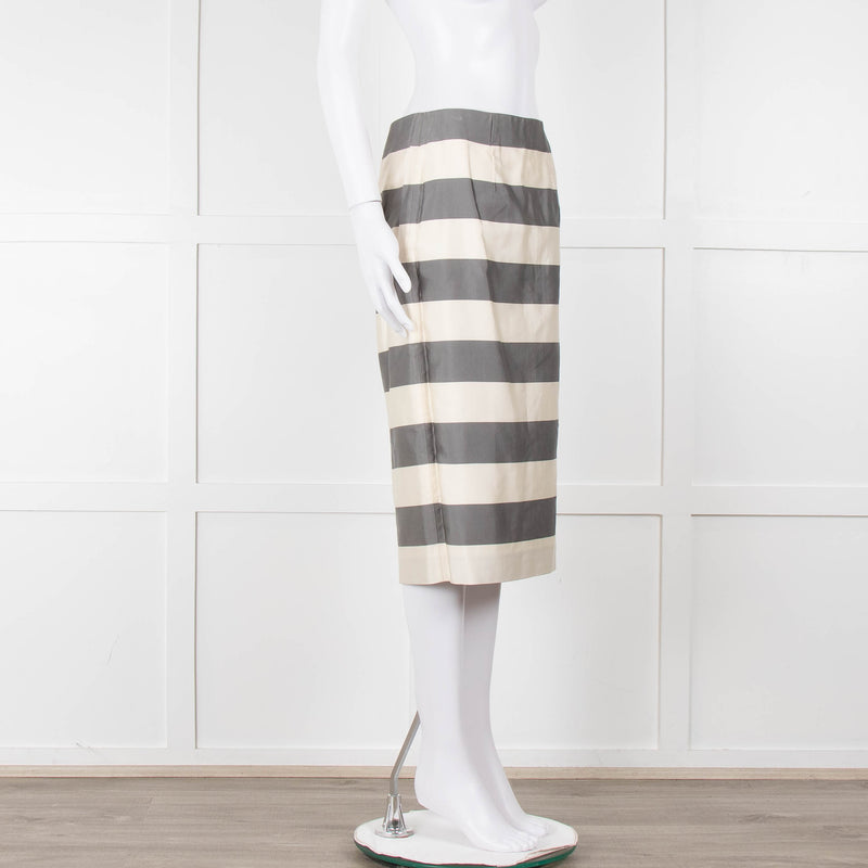 Brunello Cucinelli Grey Striped Cotton Mini Skirt