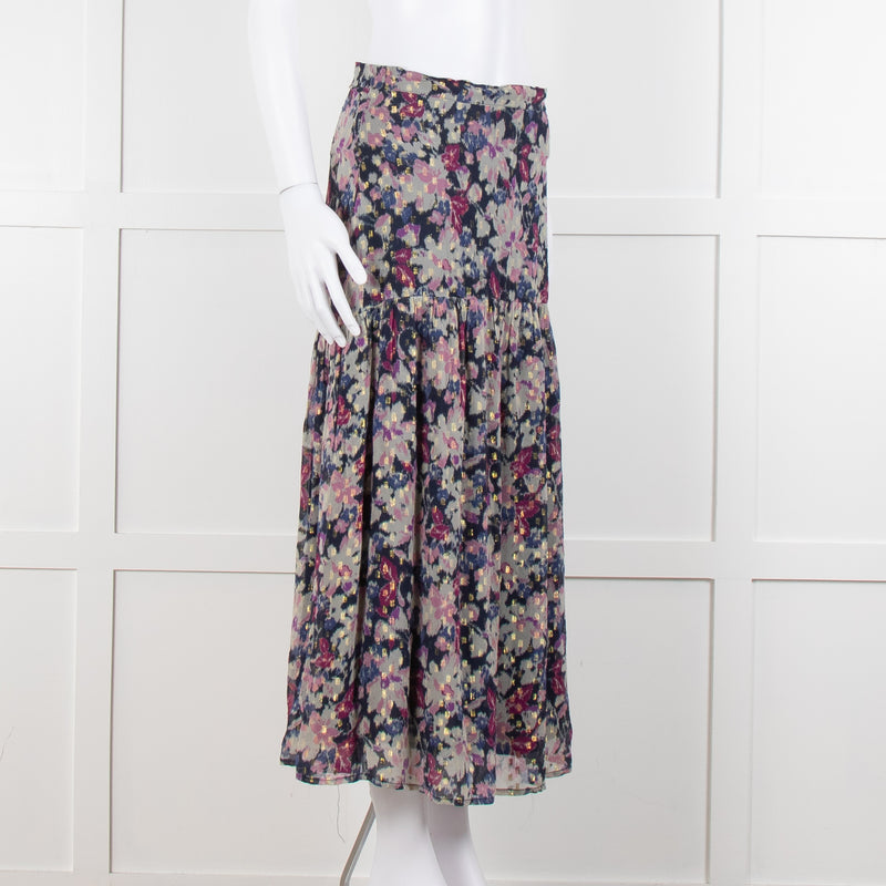 By Iris Blue Purple Gold Lurex Fleck Maxi Skirt