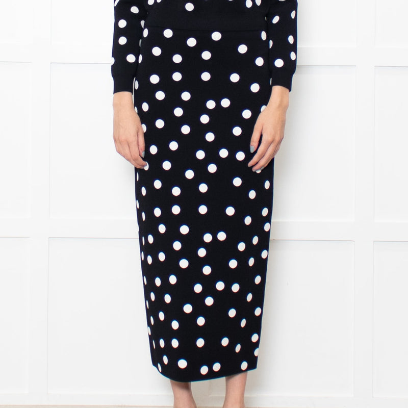 Carolina Herrera Black White Dot Pencil Midi Skirt