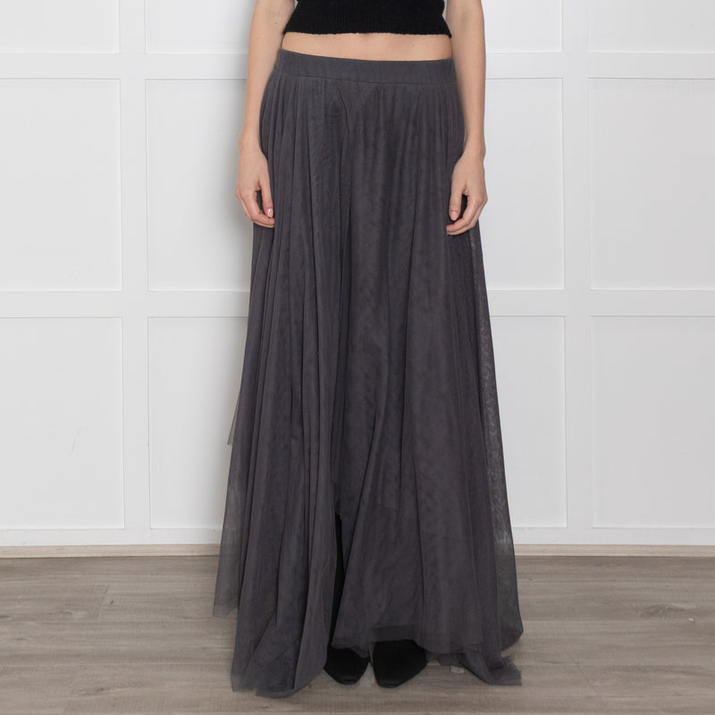 Brunello Cucinelli Black Grey Striped Tule Net Maxi Skirt