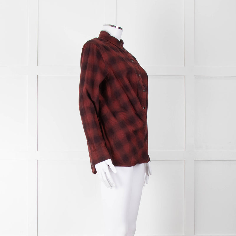 All Saints Wine Red Black Check Popper Pleat Front Blouse