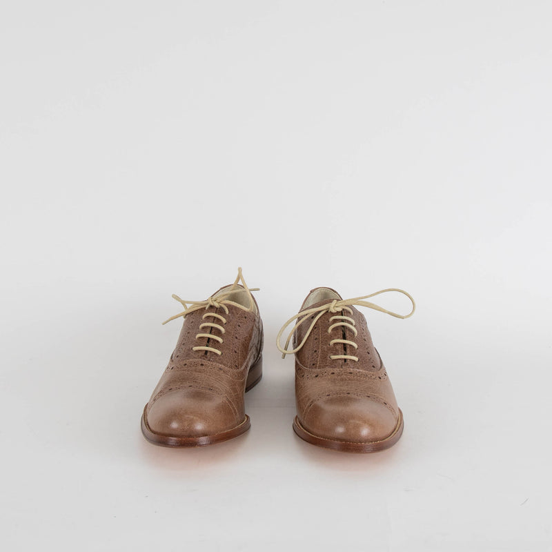 Studio Pollini Beige Leather Lace Up Flat Shoes