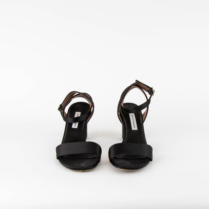 Tabitha Simmons Black Satin Block Heel Sandals