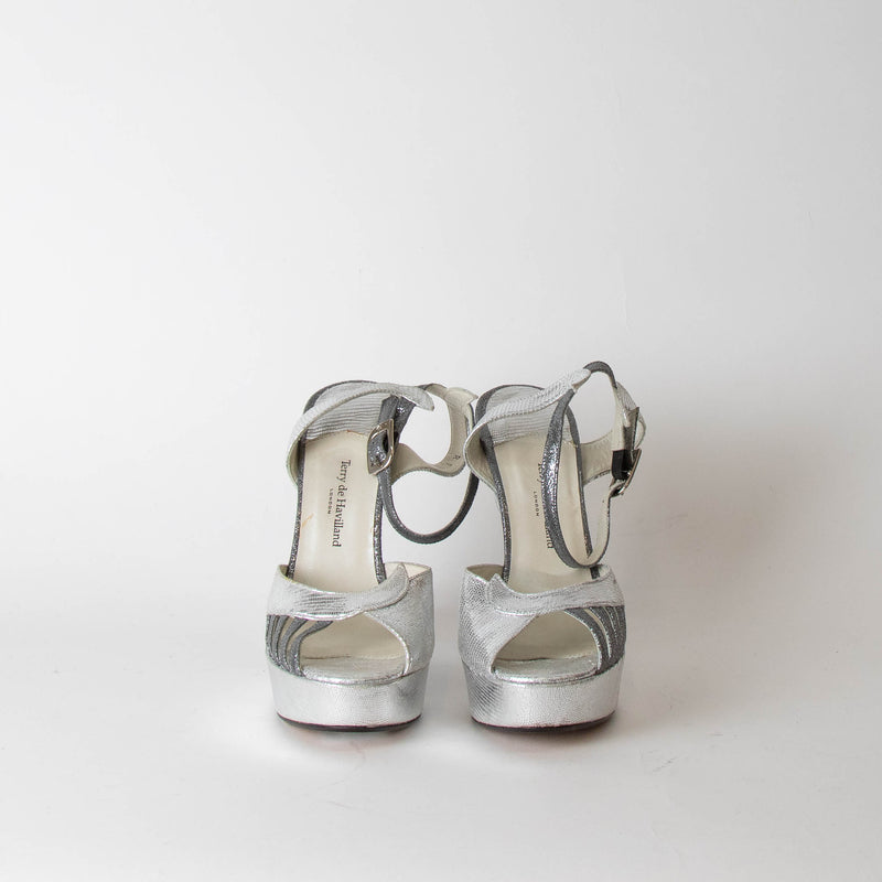 Terry De Havilland Silver Python Wedge Sandal