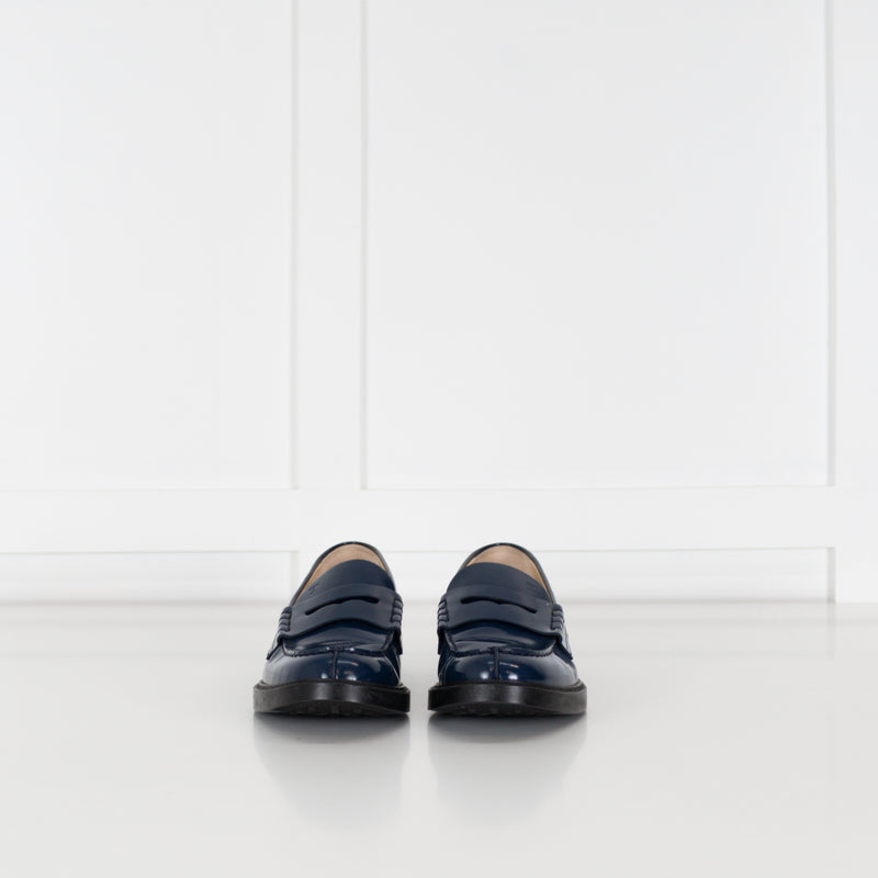 Tod's Blue Glossy Leather Loafers