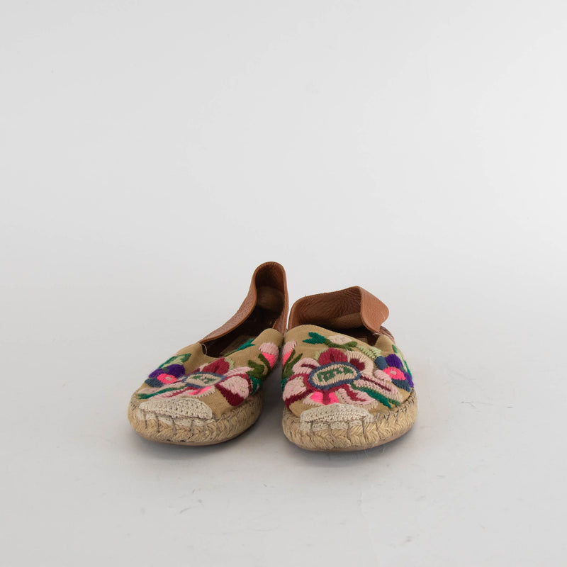 Valentino Tan Multi Embroidery Toe Flat Espadrilles
