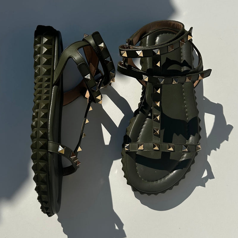 Valentino Rockstud Gladiator Sandals with Chunky Rubber Sole
