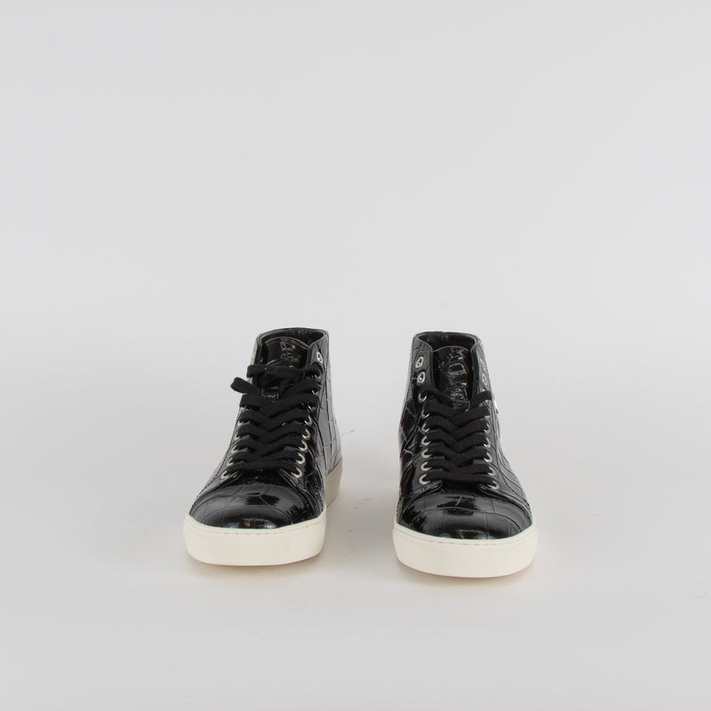 Zadig & Voltaire White Glitter Leather Mesh High Top Trainers